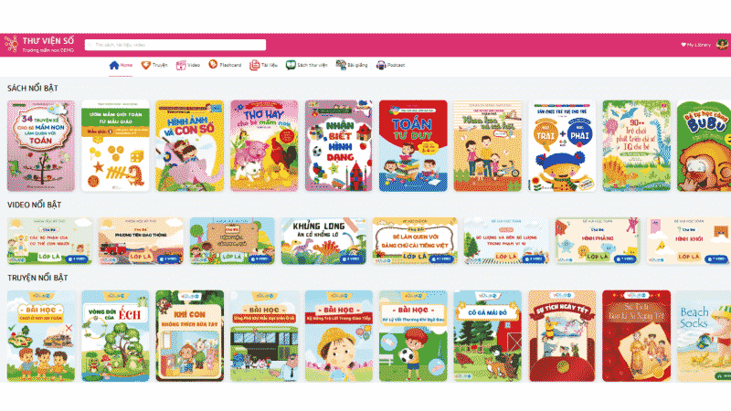 Sau khi đăng nhập thành công, hệ thống sẽ tự động chuyển đến trang chủ Thư viện số nhà trường, nơi Quý phụ huynh, giáo viên và các em học sinh có thể bắt đầu sử dụng các tài nguyên học tập của thư viện.