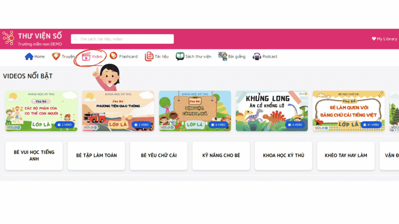 Để khám phá Video trên Thư viện số, phụ huynh và giáo viên hãy thực hiện các bước sau: