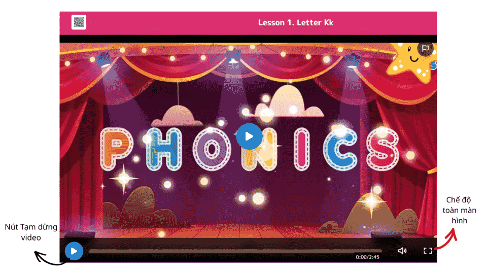 Trong quá trình xem, phụ huynh và giáo viên có thể hỗ trợ trẻ tạm dừng, hoặc chuyển sang chế độ toàn màn hình để giúp trẻ theo dõi nội dung một cách rõ ràng và dễ dàng hơn.